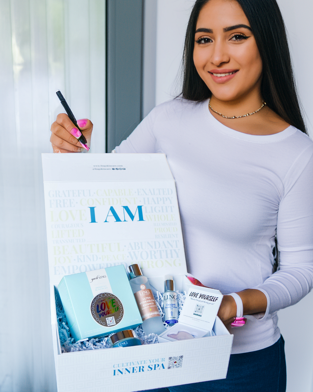 Introducing our Self-Love in a Box collection – a carefully curated set of kits designed to nurture your skin (and your soul). Each kit is packaged in a beautiful, luxurious affirmation box and includes LING’s best-selling skincare items, giving you the perfect space to set your daily intentions. This isn’t just skincare, it’s a celebration of your power, your glow, and the love you give yourself.